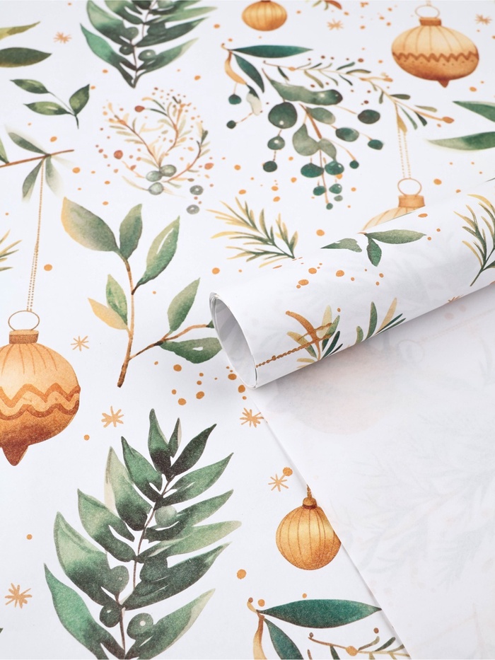 CHRISTMAS КРИСТМАС Бумага упаковочная "Веточки зимы", белый крафт, 1 лист, 80 г/м2 , 70 х 100 см