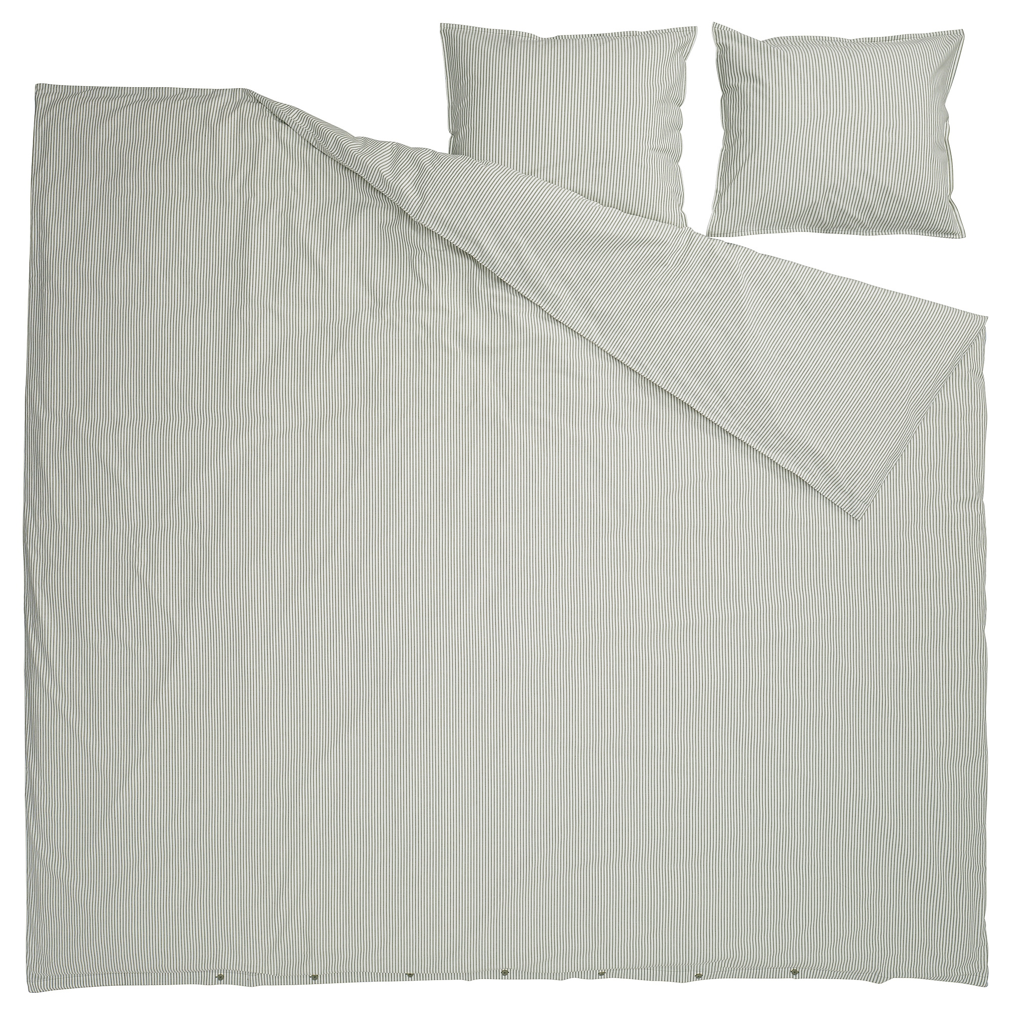 SOLFIBBLA СОЛФИББЛА Пододеяльник и 2 наволочки, бело-зеленый/полоска, 200x200 / 50x60 см