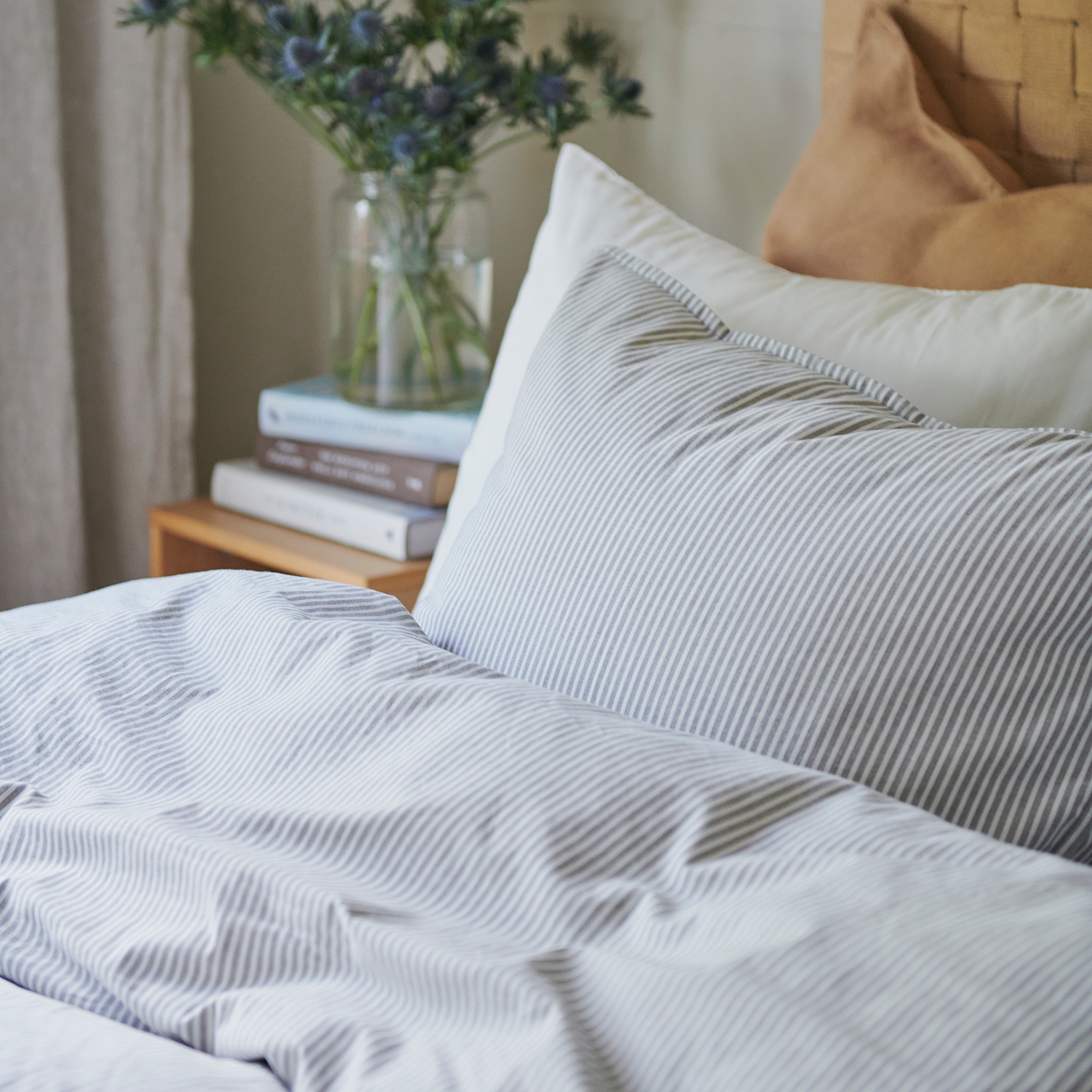 Более плотная пряжа создает уютную атмосферу в спальне с ноткой винтажного шарма ручной работы.