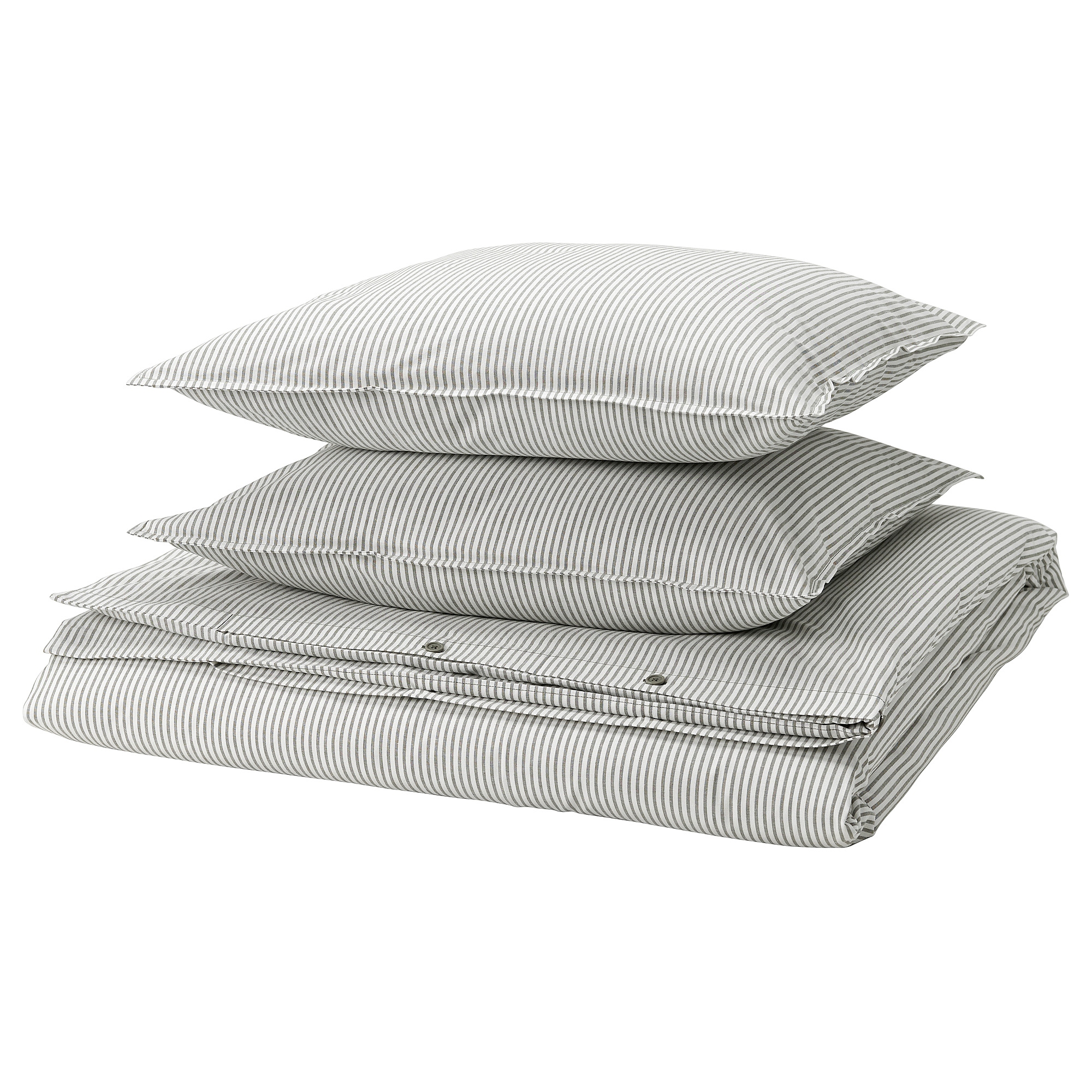 Постельное белье SOLFIBBLA изготовлено из мягкого 100% хлопка, а окрашенная пряжа создает вневременной серо-белый полосатый узор.