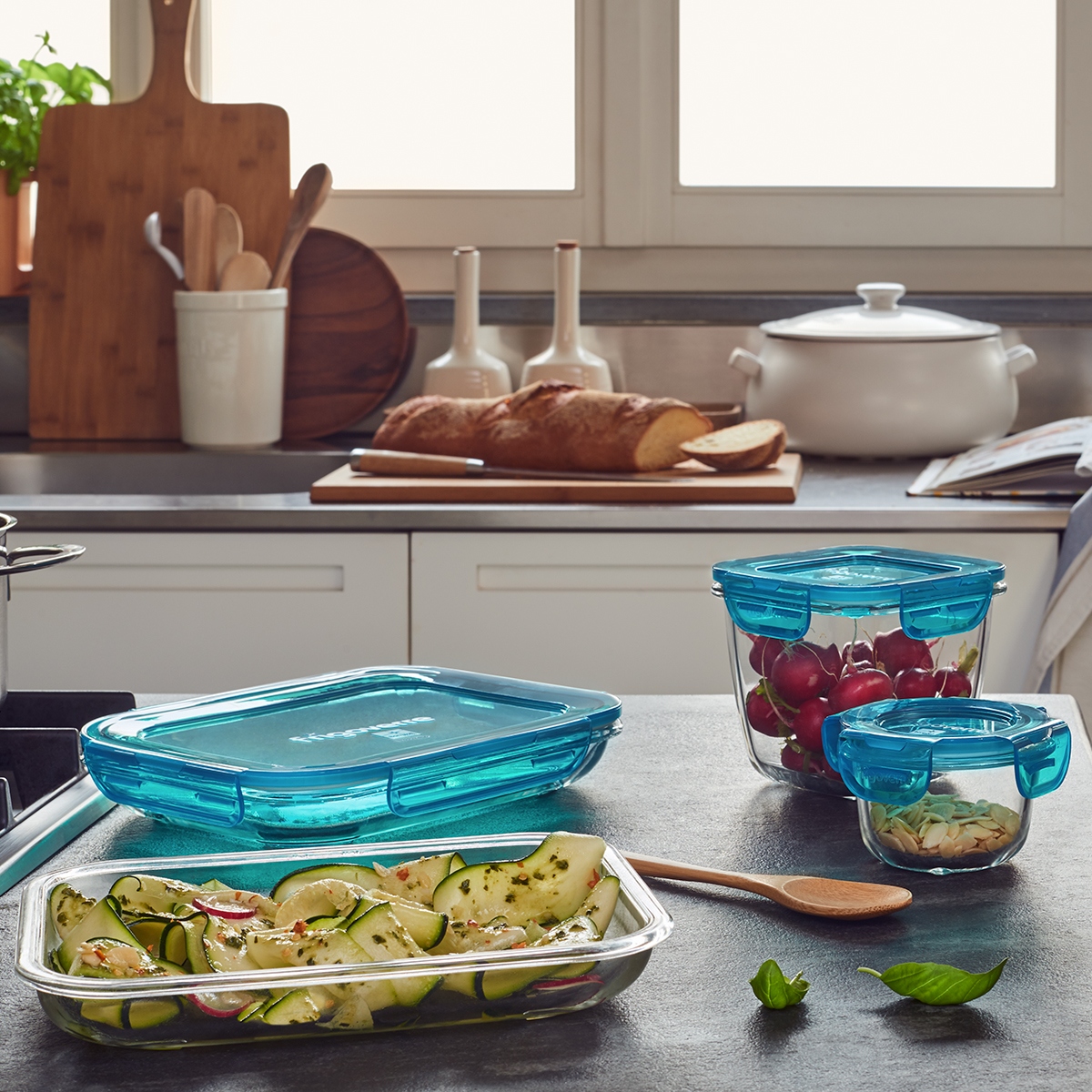 Коллекция Frigoverre Evolution включает в себя несколько контейнеров разных размеров, которую удобно подавать к столу, а благодаря герметичной крышке она идеально подходит для еды на вынос. Крышка оснащена четырьмя защелками, которые обеспечивают свежесть и герметичность.