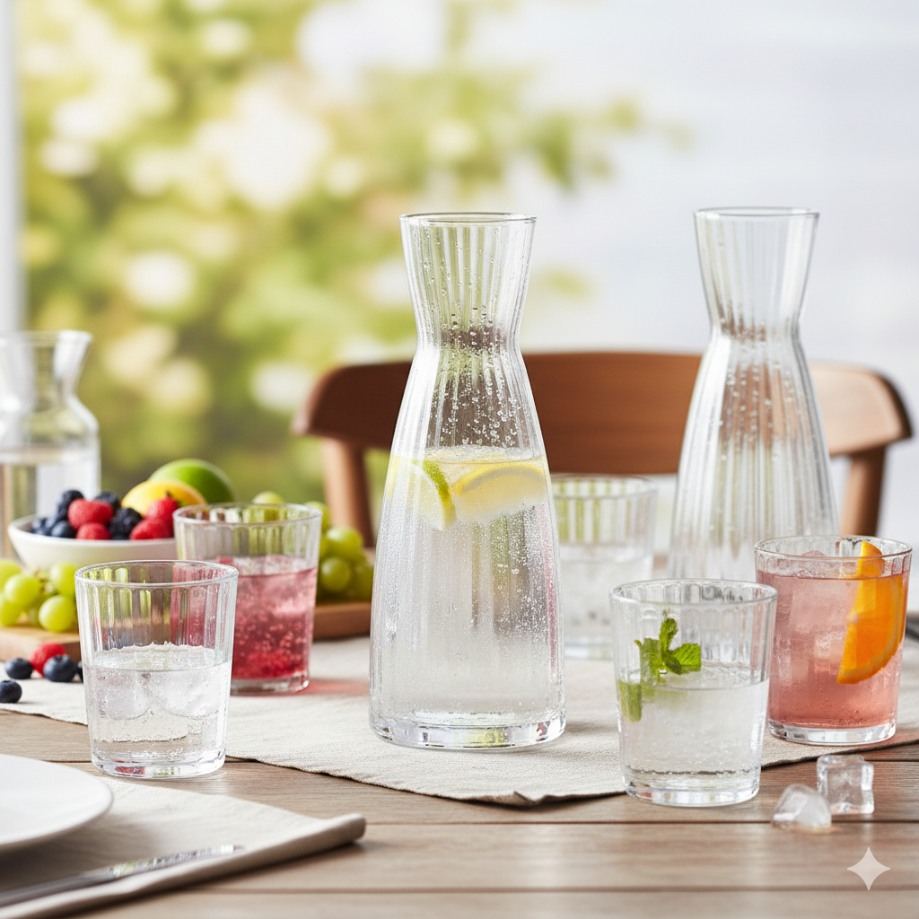 Графин объёмом 1 л – символ вечной элегантности. Его изящные грани чарующе отражают свет, создавая завораживающую игру света, которая приковывает взгляд.