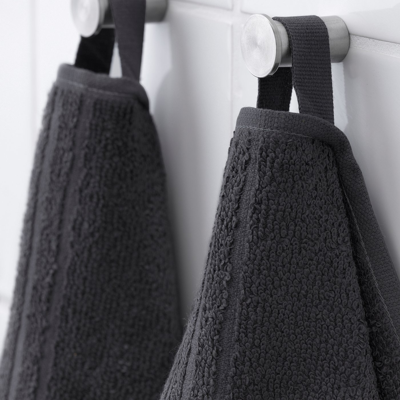 Разные цвета — прекрасно сочетаются с другим текстилем и аксессуарами в ванной.