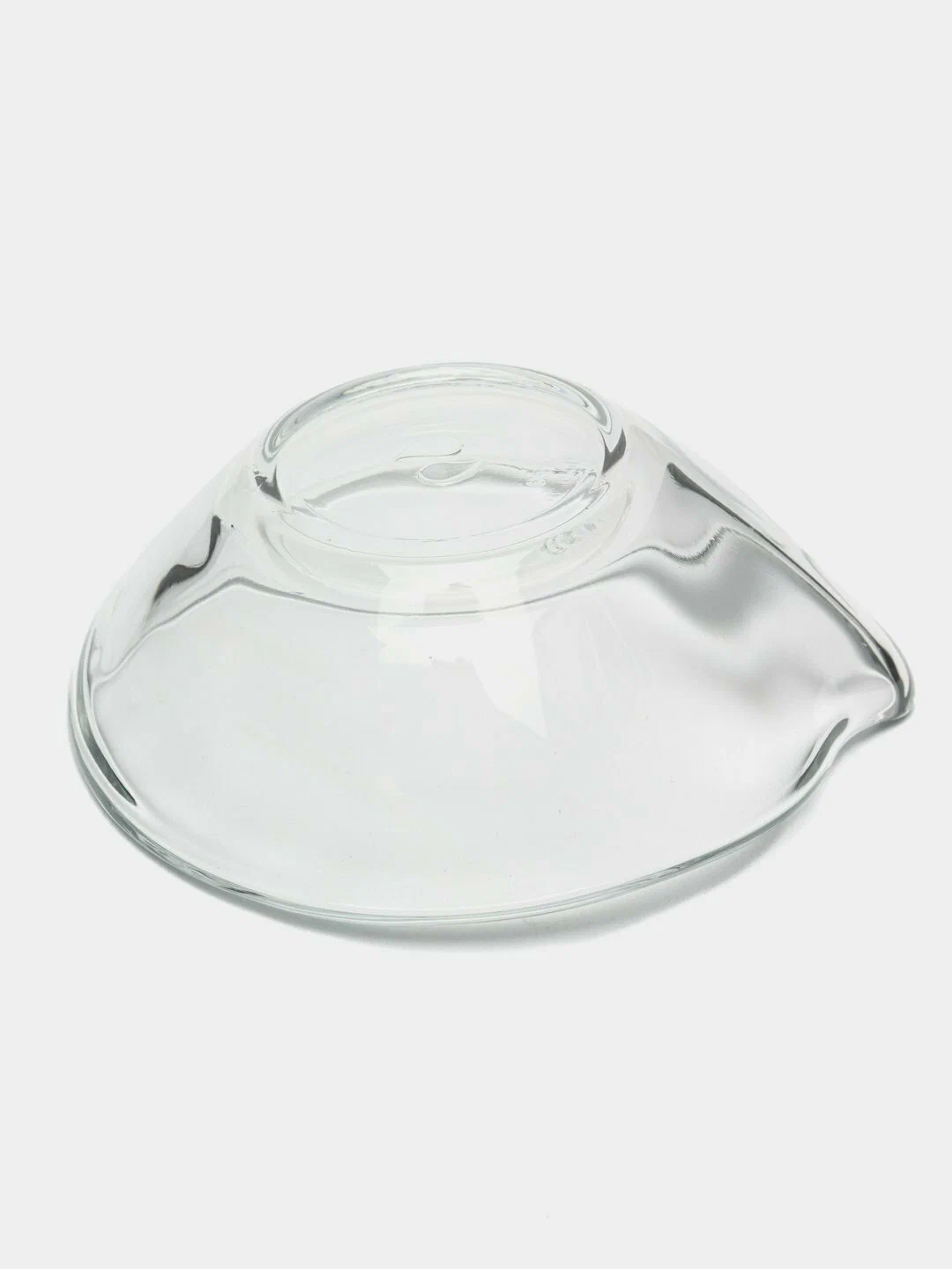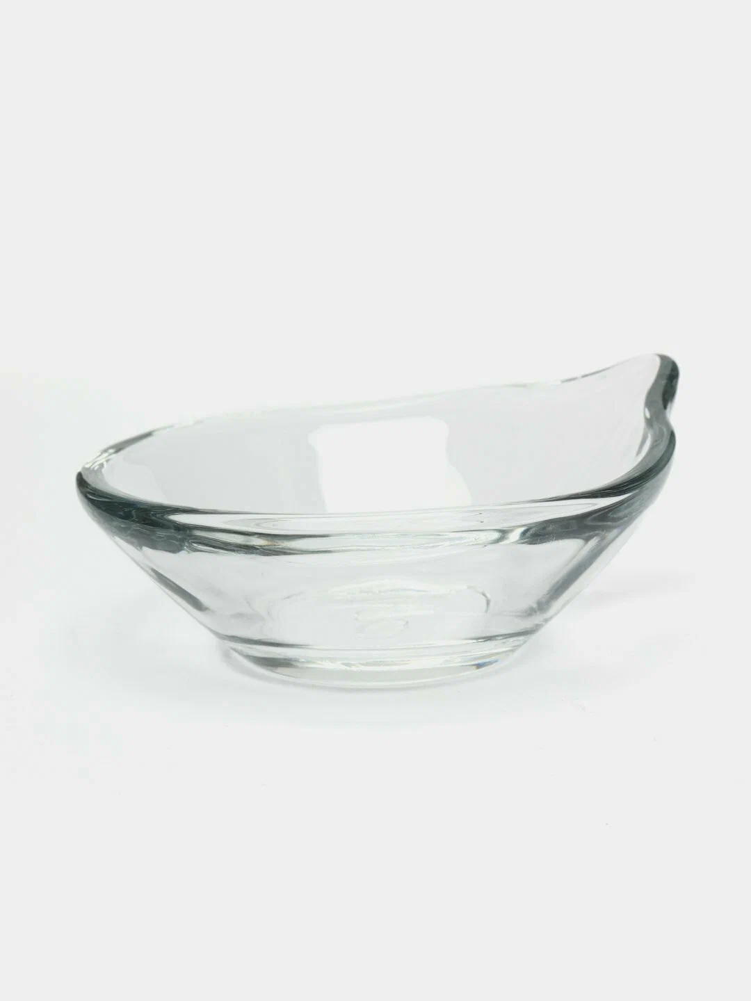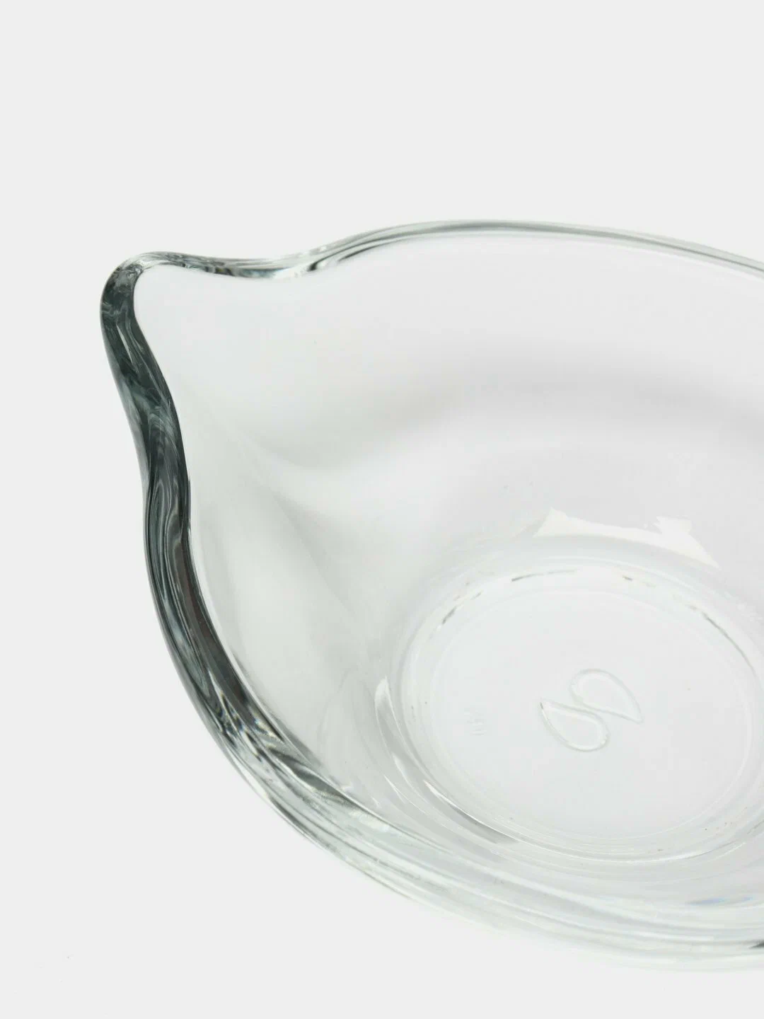 Форма соусника - круглая с носиком: высота высокого борта - 4,5 см, низкого - 3 см, длина стороны с носиком - 9.8 см, ширина - 8,8 см, толщина стенок - 4 мм.