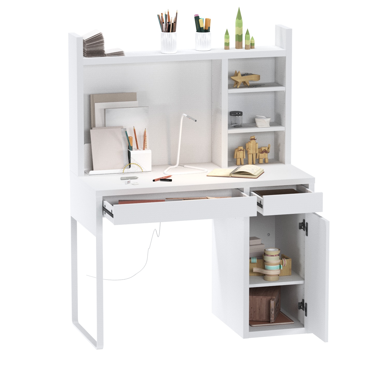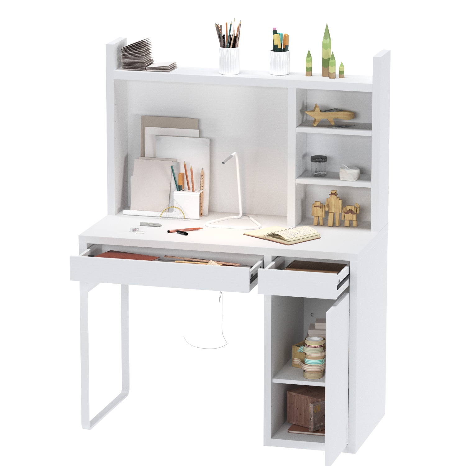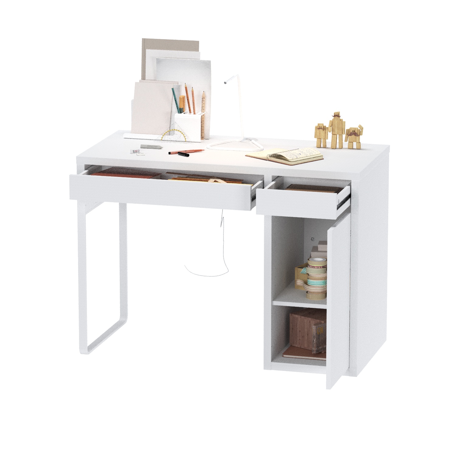 Серия KOMPI - аналог серии MICKE / МИККЕ в IKEA, произведенный по стандартам качества шведской компании в Беларуси. Стильный удобный стол с выдвижными полками и ящиком для хранения.